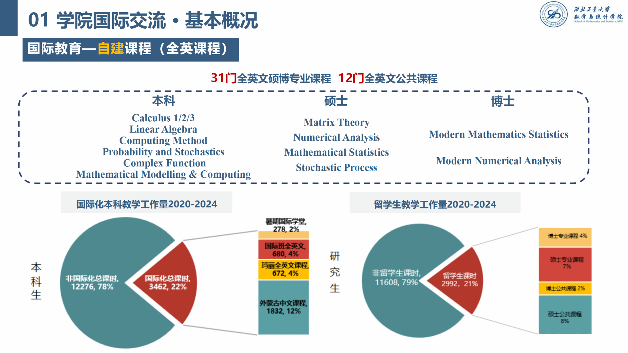 早在2011年公司启动“探索国际化人才培养模式”的国家级教育改革试点项目,创建中外员工同堂授课、同卷考试、同室科研、同班活动的本硕博贯通培养国际化人才本土教育模式的“国际班”。作为承担公司公共基础数学课程的威廉体育官方网站,相继开设了《微积分》、《线性代数》、《概率论与数理统计》、《复变函数与积分变换》、《计算方法》等5门英文课程。2016 年威廉体育官方网站伦敦玛丽女王大学工程公司获教育部正式批准,成为我国西北地区一所中外合作办学机构,公司承担了该联合公司《微积分》、《线性代数》、《数学建模与计算》三门全英文课程的教学。