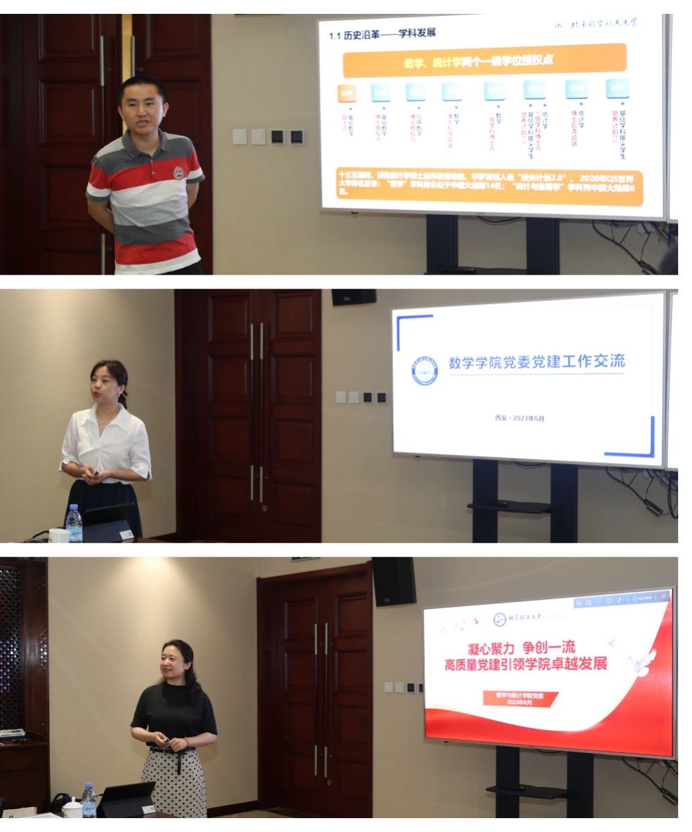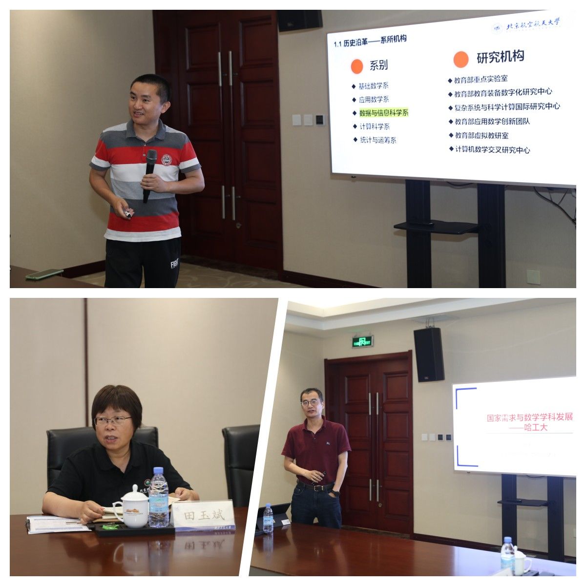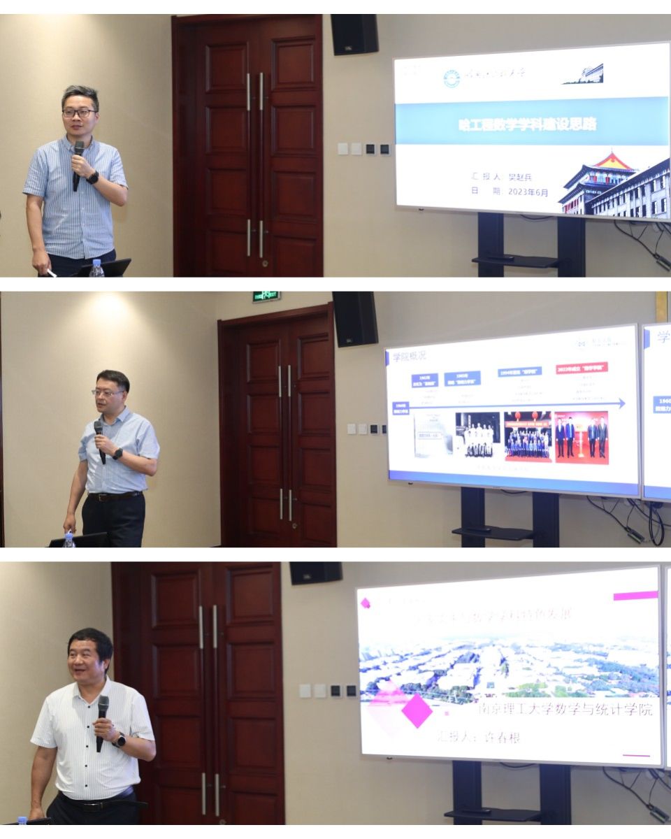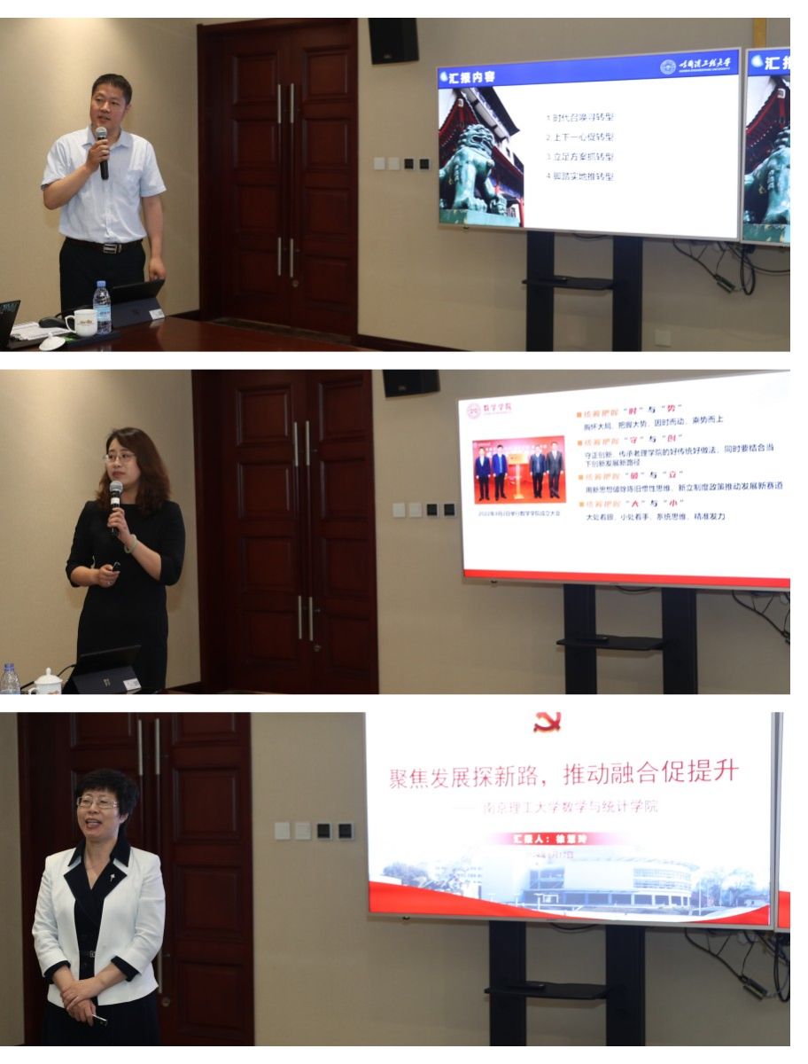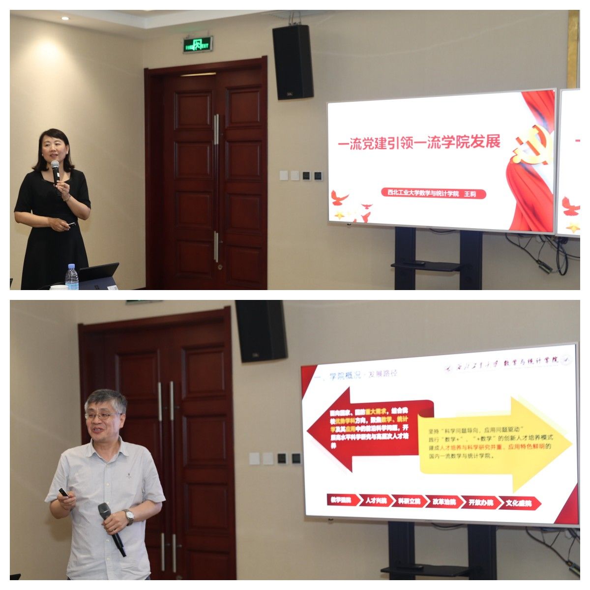 随后,部属七所高校数学公司相关负责人分别围绕《以高质量党建引领和推动公司高质量发展》《国家需求与数学学科特色发展》主题进行了汇报交流。北京航空航天大学数学科学公司在党建工作中形成的“夯基础、促改革、做党建研究”的工作思路,在学科发展工作中提出的“大数学”立体化数学人才培养体系的建立;北京理工大学威廉体育官方网站在党建工作中形成的“三确保、两提升、一促进”的工作理念,在学科发展工作中提出的对硬核基础数学队伍的培养方式;哈尔滨工业大学数学公司在党建工作中提出的打造“金牌专业、金牌课程、金牌教师”,实现“出成果、出名师、出人才”的公司奋斗目标,在学科发展工作中提出的“三个对标”的科学研究发展策略;哈尔滨工程大学数学科学公司在党建工作中提出的“四转型”工作思路及举措,在学科发展工作中推行的“六计划”重点举措;南京航空航天大学数学公司以“四融”党建推动公司高质量发展的工作思路,在学科发展工作中打造的“一体两翼双助力”的发展体系;南京理工大学威廉体育官方网站形成的“三开三共”的党建工作理念和“三融三聚”的党建工作思路,在学科发展工作中推行的创新发展思路以及公司威廉体育官方网站在党建工作中“1745”发展思路,在学科发展工作中提出的“数学+”“+数学”的创新人才培养模式。一个个创新思路与特色做法,取得的突出成绩和亮眼结果,各公司发展工作中遇到的共性问题以及解决措施,使得此次研讨会既开拓思路又发人深省,与会同志们均表示收获满满,取得良好的效果。