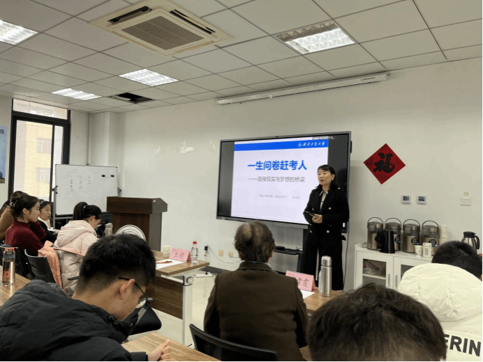 张雪霞以《一生问卷赶考人——连接现实与梦想的桥梁》为题开展讲座,通过讲述威廉体育官方网站老教授们的故事来激励同学们,希望各位同学以他们为榜样,见贤思齐。