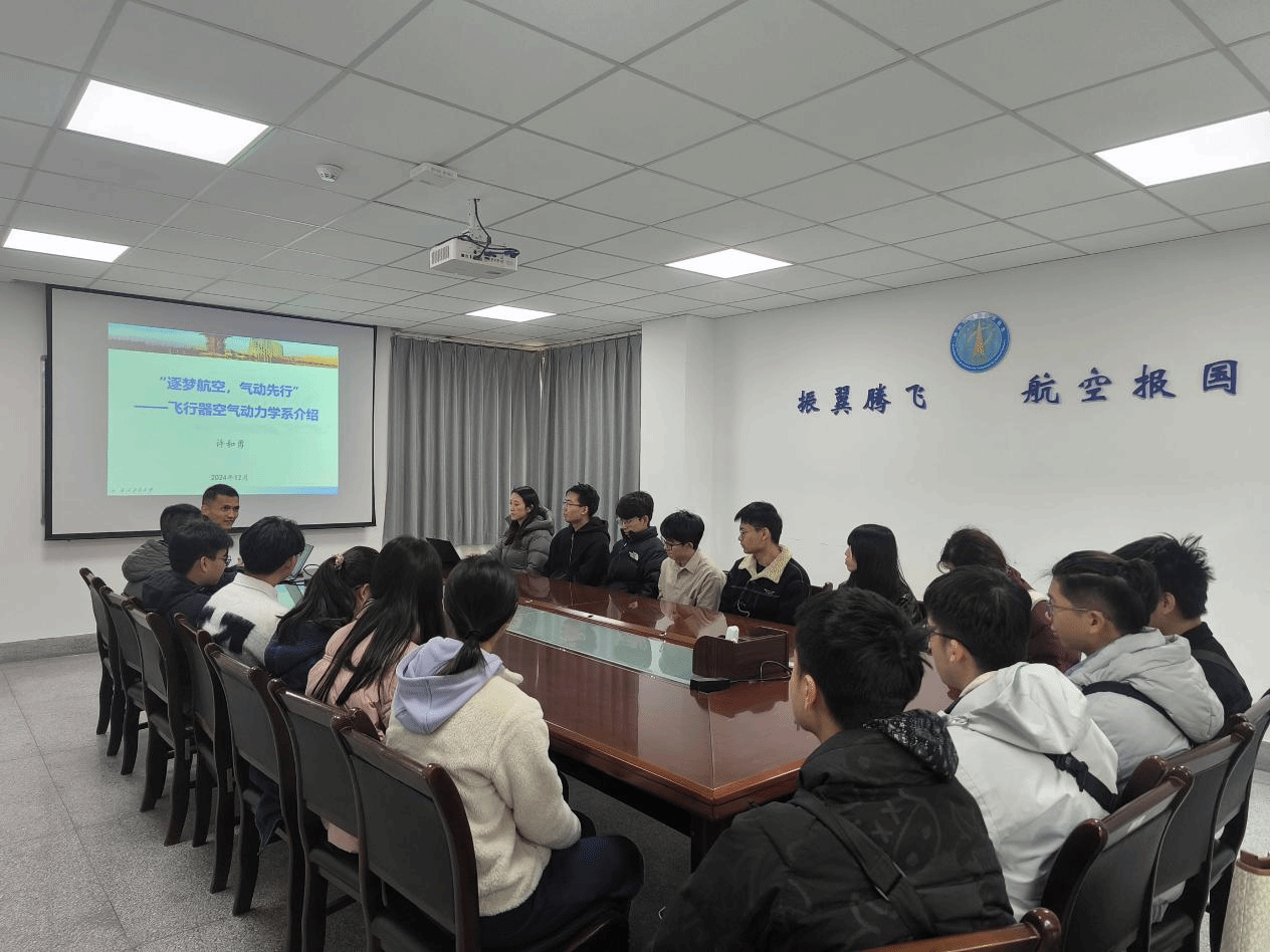 航空公司许和勇教授以《筑梦航空,气动先行》为题,从苏霍伊、米高扬说起,系统地介绍了实验室的发展历程、研究队伍、研究方向及主要教学科研成果等,勉励与会同学筑牢数学专业功底,并耐心解答了同学们感兴趣的问题。