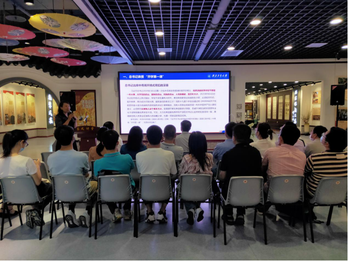 在讲解员的引导下,党员们依次聆听学习参观红色家风、家规家训、文明新风三个主题单元。红色家风单元展示了毛泽东、刘少奇、朱德、周恩来、邓小平、陈云、习仲勋等老一辈无产阶级革命家,在长期革命实践、社会主义建设和改革开放历史进程中形成的艰苦朴素、廉洁修身、不徇私情、浩然正气、为民奉献、严以律己、宽以待人的高尚情操,焦裕禄、谷文昌、杨善洲、甘祖昌等先进共产党员楷模们热爱劳动,清白持家,一生为党、一心为民的优秀品质,激励教师们牢记使命、爱岗敬业,自觉在教育岗位上践行以德立身、以德立学、以德施教,服务社会。