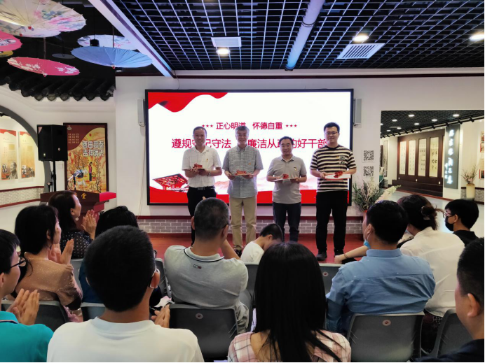参观结束后,全体党员共同重温了入党誓词,提醒党员们应时刻牢记党员身份,履行党员义务,肩负党员责任,传承红色家风,学习榜样力量。随后公司党委书记王莉为全体教职工讲授了以“遵规守纪守法,做廉洁从政的好干部”为题的廉洁教育主题党课,运用警示教育案例结合工作实际,教育党员要从传承优良家风做起,从坚守党员责任义务做起,进一步增强遵纪守法意识,树牢底线意识,筑牢廉洁思想防线。活动最后王莉代表公司党委为六月过政治生日的5位党员赠送了政治生日贺卡。