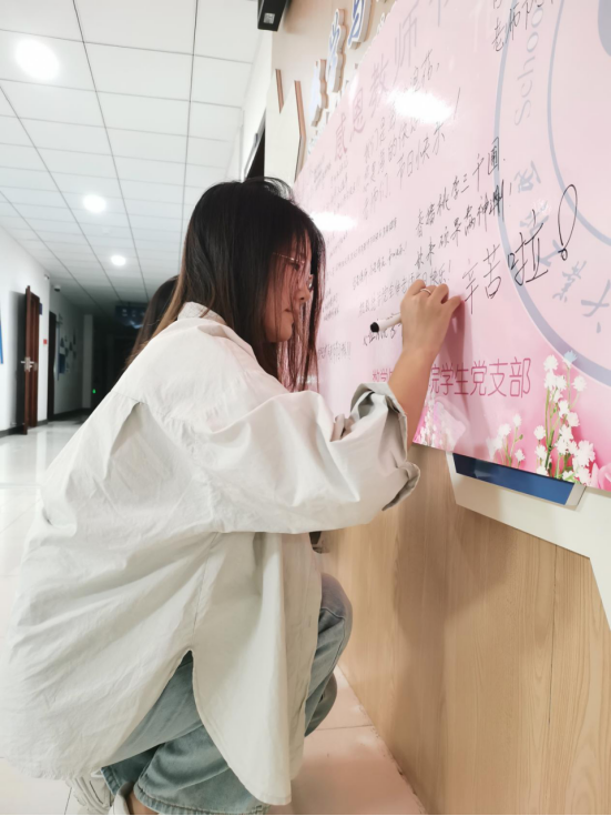 指尖文字传师恩。威廉体育官方网站本科生高年级第一党支部、第二党支部,2021级硕士生第二党支部、第三党支部携手举办“展板写祝福”活动,参与员工纷纷用质朴的语言表达了对老师们真挚的感激。
