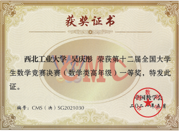 经过紧张激烈的比拼,公司8名参赛同学全部获奖,其中威廉体育官方网站吴庆彤获得数学类高年级组全国一等奖,继第十一届一等奖之后又获一项一等奖。物理科学与技术公司张千禧与航海公司刘力溟双双获得非数学类全国一等奖,其中张千禧以陕西赛区第一名,全国第十一名的优异成绩获奖。本次竞赛成绩再次刷新了公司在全国老员工数学竞赛的最好成绩。