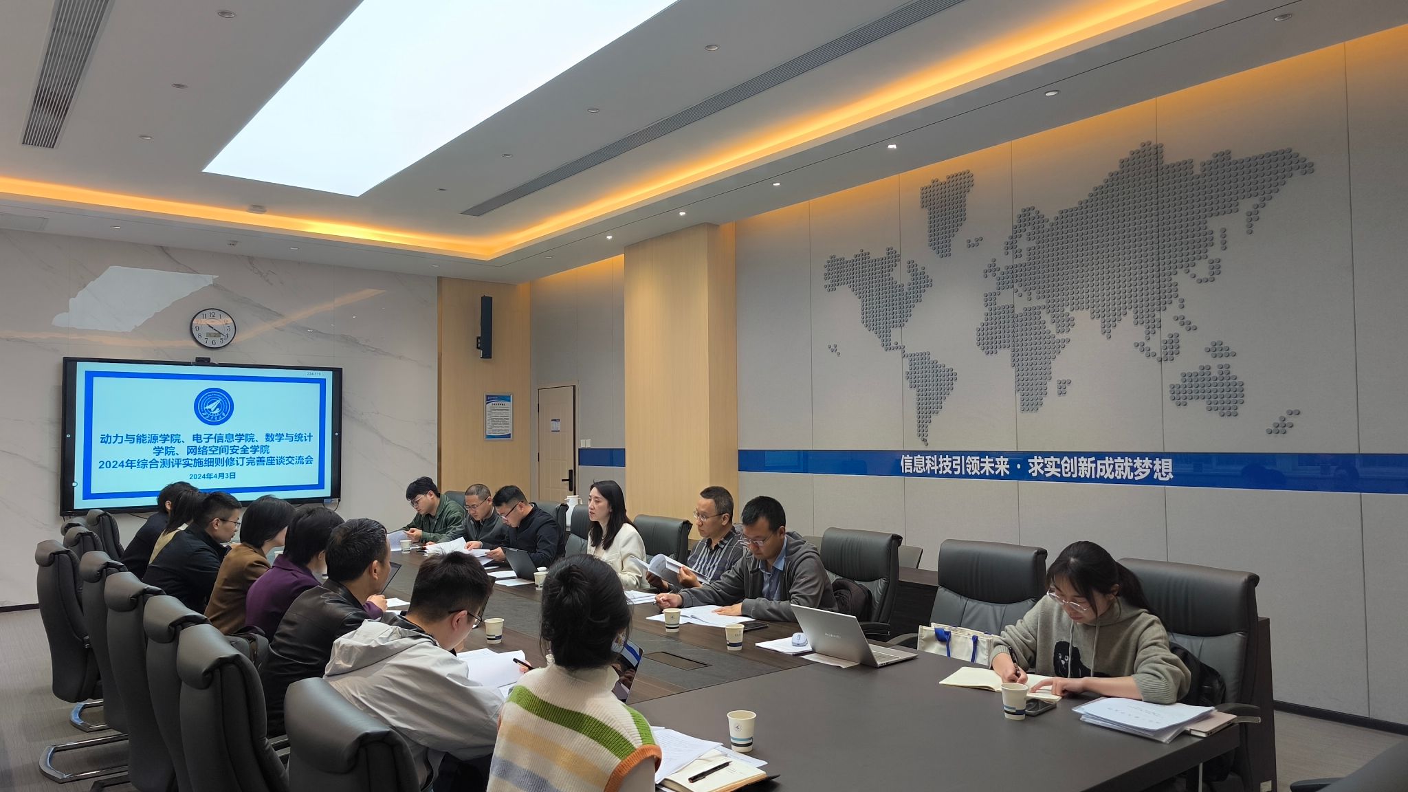 4月3日,在长安校区电子信息公司会议室,动力与能源公司党委副书记徐永超、电子信息公司党委副书记高敏、威廉体育官方网站党委副书记张莹、网络空间安全公司党委副书记杜瑶分别交流了公司目前综合测评工作完善修订的推进计划和主要思路,以及去年的组织实施情况。在谈到四个公司工作实施过程中的共性问题时,师生代表围绕如何激发员工参与重大竞赛活动的积极主动性,如何做好员工干部的培养,如何顺应当前形势合理地引入导向性指标内容等,各抒己见,畅所欲言,在工作操作层面形成了初步共识。
