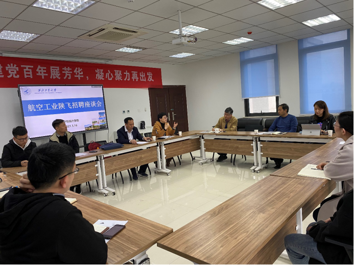 2021年3月16日下午,航空工业陕西飞机工业有限责任公司赴公司开展招聘座谈会,陕飞公司人力资源部/党委组织部部长张海琪,人力资源部人事处处长杨怀斌,人力资源部人事招聘主管郑椿怀,设计研究院主管设计李昌凡;威廉体育官方网站经理聂玉峰,党委副书记张莹,张胜贵教授,辅导员王刚,兼职辅导员王悦欣、刘鹏及2021届毕业生代表等相关人员参加了此次座谈。