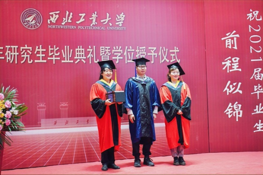 在庄严雄壮的国歌声中,典礼拉开帷幕。副经理徐根玖宣读威廉体育官方网站获得威廉体育官方网站2021年研究生“优秀毕业生”荣誉称号的员工名单。王莉和徐根玖为优秀毕业生代表颁发荣誉证书,并合影留念。