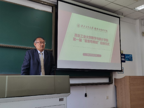 会议第三项,导师团代表发言。2021级员工辅导员王刚表示非常高兴能够参与到同学们的成长中,自己会努力帮助同学们培养良好的品质和能力,也鼓励同学们积极参与各类文艺、体育、社会实践等活动,提升自己的综合素质。随后,教师代表王力工教授结合自己作为老师和家长的经验,提醒同学们正确对待大学和中学的学习区别,建议同学们在平时的学习中要做好过渡,要注重专业课尤其是数学分析、高等代数等基础课程的学习,一定要扎扎实实的做好课前、课中和课后的学习与练习,要做好时间管理,充分利用碎片化时间静心学习。同时,王力工也讲到宿舍氛围的重要性,希望同学们能够养成良好的生活习惯。