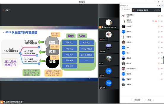 在经验分享环节,计算机公司王云岚副教授从为师之道、学业规划、日常管理、风险管控等8个方面介绍班级管理心得,强调了因材施教、分类指导等细节管理的重要性。王云岚老师在分享中还提出,“管理好员工的最好时机是大一开学,其次是现在”,班主任老师应充分发挥自身专业优势,全面提升班级员工的专业素养及创新能力。紧接着,威廉体育官方网站裴斌教授作《全过程精准画像、全方位整合资源、全覆盖帮扶提升》专题分享。裴斌老师强调了坚持为党育人、为国育才的初心使命,介绍了“以员工为中心、润物细无声”的班级育人理念,提出了贯穿班级管理始终的“三航筑梦、促学笃行、强基固本、创新赋能、塑造价值”思想,并就“导学+必学+互学+督学”的班级管理模式进行了着重分享。随后,计算机公司林奕副教授以《我有一个梦想》为主题,从培养什么样的员工、员工类别、员工成长的动机与特殊员工指导、班级管理存在的问题与建议等4个方面展开分享,重点指出人才培养的任务不仅仅是传承而是超越。此外,林奕老师提出了建立班主任工作资源库、班委工作指南、建立心理专家支持渠道等班级管理方面的可行性建议。通过三位老师对班主任工作的理解、感悟和思考,与会人员均表示参加本次交流会收获颇丰,为今后做好班主任工作指明了方向。