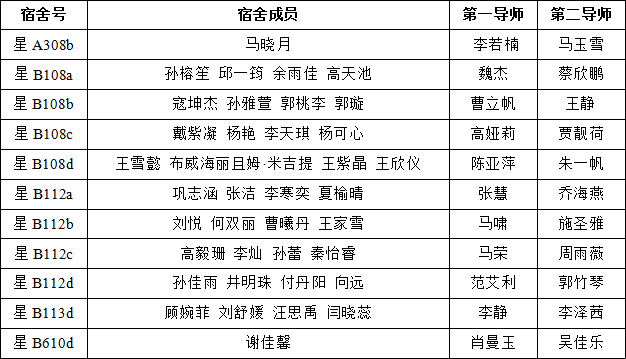 威廉体育官方网站第二届“宿舍导师团”成员名单