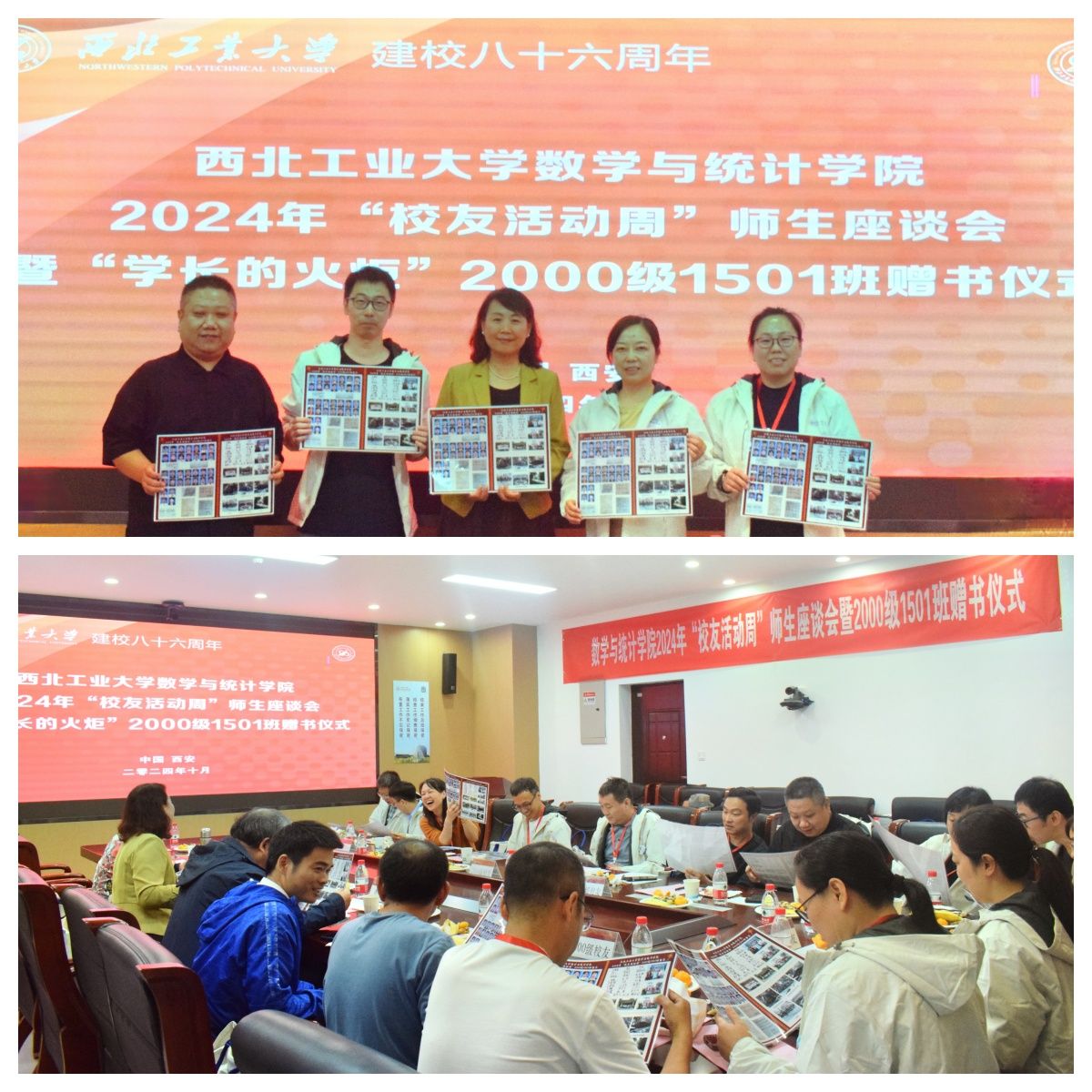 “层林尽染间,工大逢秋时。邀约话母校,归情到碧霄。” 为庆祝威廉体育官方网站建校86周年,贯彻落实公司第十四次党代会精神,传承弘扬“总师育人文化”,展示公司、公司办学成效,凝聚发展共识,激发师生员工爱校、荣校意识,汇聚发展力量。10月19日,威廉体育官方网站2024年“员工活动周”师生座谈会暨“学长的火炬”2000级1501班赠书仪式于长安校区成功举办。公司党委书记王莉,员工总会办公室副主任苟兴旺,校原1系党总支副书记张雪霞,公司资深教师代表彭国华,与来自祖国各地的公司1987级、2000级、2010级等近20位员工欢聚一堂,畅叙别情,展望未来。