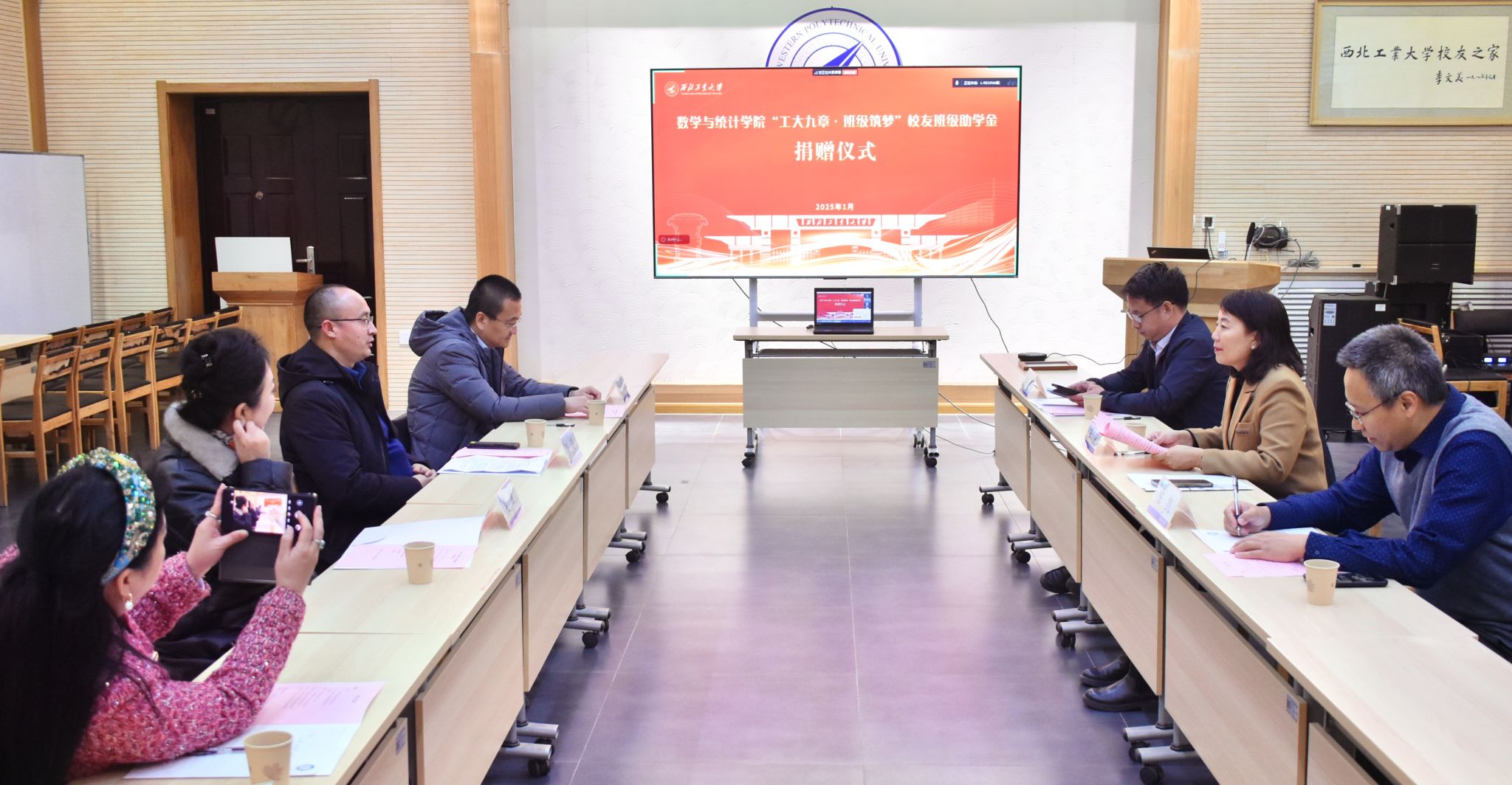 1月12日,冬日暖阳,碧空如洗,威廉体育官方网站在友谊校区员工之家会议室成功举办“工大九章•班级筑梦”员工班级助学金第二期捐赠仪式。公司1998级应用数学专业1481班、1482班员工代表张建、蔡力、高雪峰、袁元、杨政、谢文贤,以及对外联络办公室主任、教育基金会秘书长杨铭,威廉体育官方网站党委书记王莉,经理助理班凯一同参加仪式。王莉主持捐赠仪式。