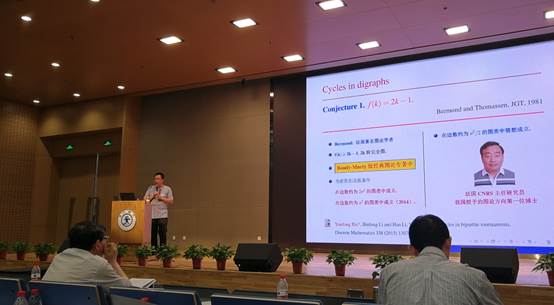 白延东与合作者完成的获奖论文给出了图论中著名的Bermond-Thomassen猜想在k=3情况下的新证明,否证了丹麦图论专家Bang-Jensen等2014年在图论领域权威期刊Journal of Grpah Theory 75 (2014) 284-302中提出的关于有向图中顶点不交圈数目的一个猜想,论文发表在图论领域权威期刊《SIAM Journal on Discrete Mathematics》。白延东作为获奖代表应邀做大会报告介绍了获奖论文的研究工作。