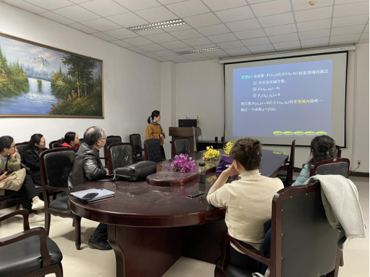 集体备课活动由陈亚萍、杨佳琦两位青年教师各选了一个知识点做讲解。首先,陈亚萍围绕隐函数的微分法这一章节中的一个知识点——“由一个方程确定的隐函数的微分法”进行了讲解。讲解结束后,各位专家提出了一些建议和意见。陆全老师建议在授课的过程中突出重点,切忌面面俱到。彭国华老师建议将课程思政元素融入到教学过程中,从认识论、方法论及本体论几个方面提高教学质量。