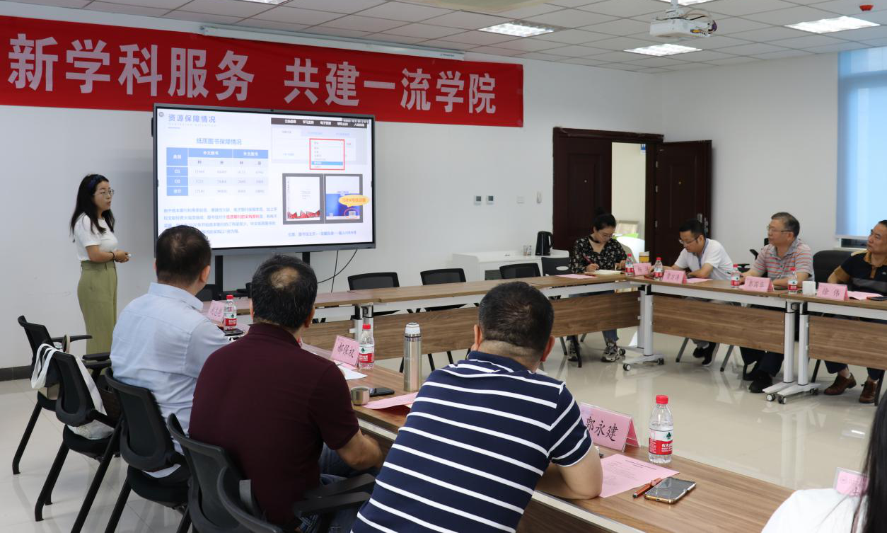 接下来,赵志艳老师详细汇报了图书馆文献、数据库的覆盖保障情况。罗星华老师汇报了图书馆对数学学科服务情况,就公司教师发表论文情况进行详细分析,并列出了与同层次高校的详细对标数据。