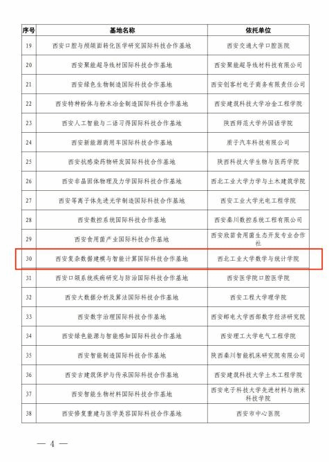 近日,西安市科学技术局(外国专家局)公布了第五批西安市国际科技合作基地(以下简称“基地”)认定名单,威廉体育官方网站牵头申报的“西安市复杂数据建模与智能计算国际科技合作基地”获认定批准。