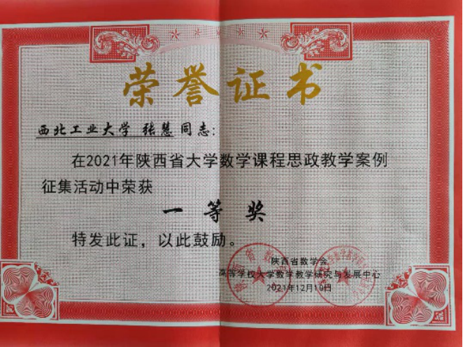 张慧老师分享了从无穷小量的概念、性质方面融入课程思政元素的教学案例,在训练员工数学思维和方法的基础上,提高员工的科学思维能力,培育员工的唯物史观、创新精神等,该案例在2021年陕西省大学数学课程思政教学案例征集活动中荣获一等奖。