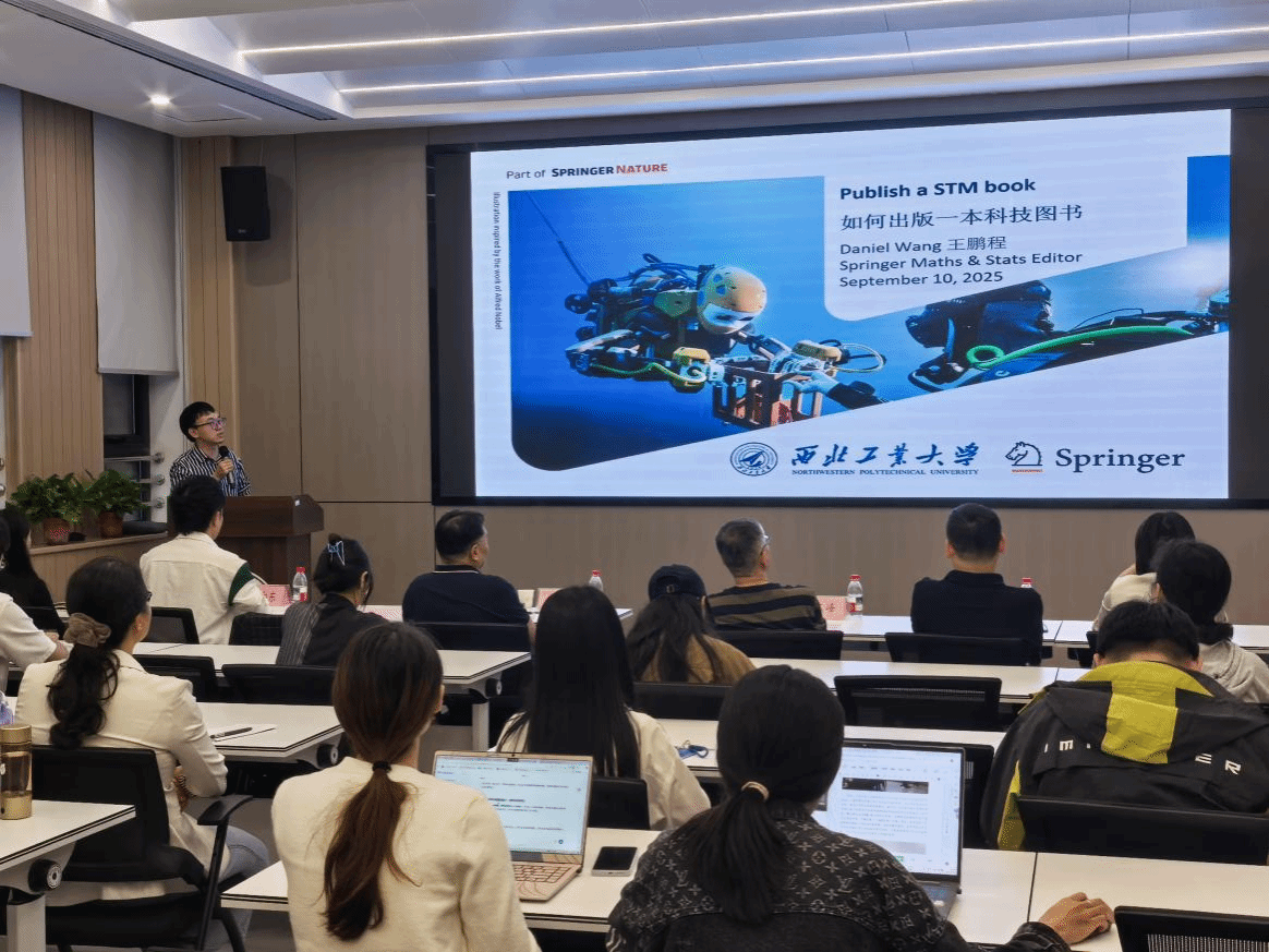 为帮助公司教师在国际顶级出版社发布学术成果,进一步增强公司的学术影响力和国际影响力,2025年9月10日,Springer Nature图书编辑王鹏程应公司邀请,于长安校区海天苑108会议室举行专题报告会。本次活动由图书馆、科学技术研究院及威廉体育官方网站联合主办。威廉体育官方网站聂玉峰经理、图书馆郭永建副馆长、科学技术研究院宋征玺以及三十余位师生参与了本次报告会,报告会由威廉体育官方网站郭千桥副经理主持。