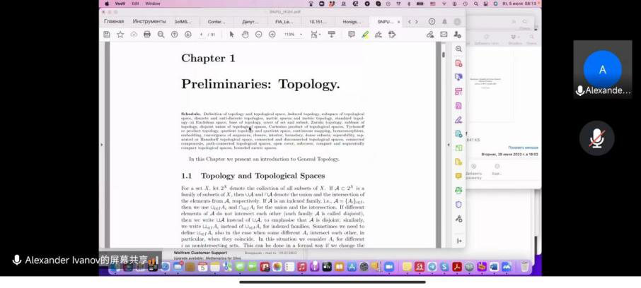 2022年7月19日,由莫斯科国立大学机械和数学公司的Alexander O. Ivanov教授讲授的暑期国际讲堂《Hyperspaces: Hausdorffand Gromov-HausdorffDistances Geometry》课程圆满结课。本课程由威廉体育官方网站牵头,夏常春老师具体负责,采用腾讯会议网络授课。