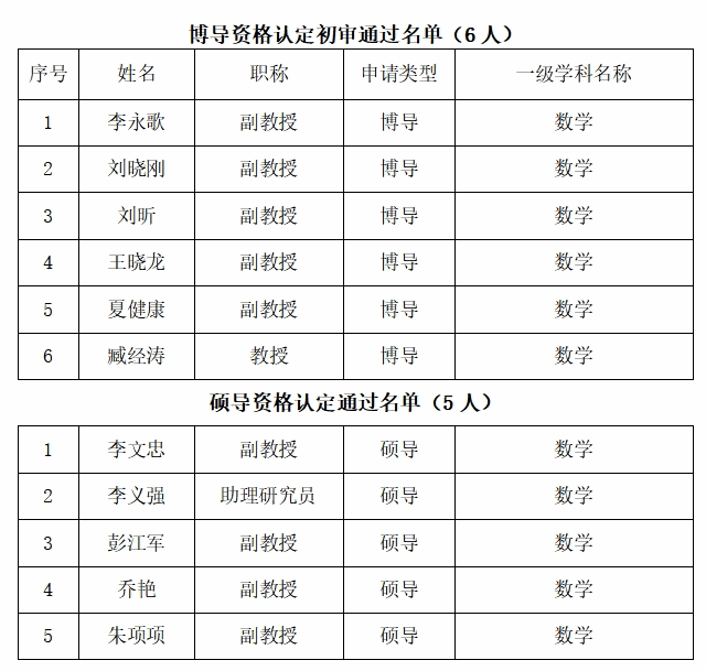 经教师申报,公司审核,对破格申请博导的送校外同行评议,并组织学位评定分委员会及导团队格认定小组评审,现将导团队格认定公司评审结果予以公示,公示期为3个工作日,如有异议,请在公示期内向教学办公室反映。以下名单按照姓名首字母排序。