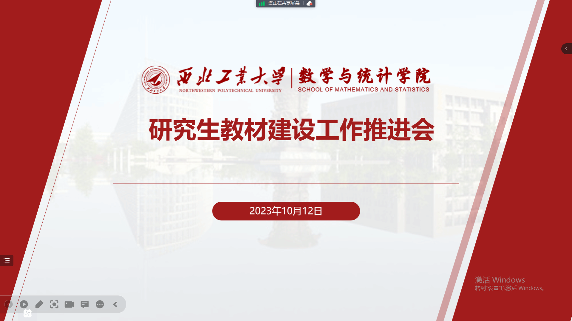 为推动陕西省理工类高校工科硕士研究生数学基础课程教材共建共享,加快威廉体育官方网站校级立项教材、基础前沿课教材建设进程,提升教材建设质量,2023年10月12日下午,公司通过腾讯会议线上组织研究生教材建设工作推进会。经理聂玉峰、副经理徐根玖、研究生公共课课程负责人、“十四五”校级规划教材建设项目负责人、基础前沿课程负责人等20余名教师参加会议。推进会由徐根玖主持。