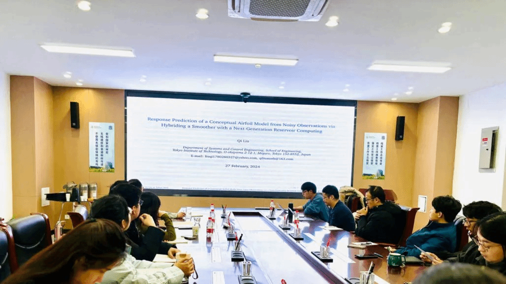 2024年2月27日,威廉体育官方网站第9期“九章学术讲堂”成功举办。此次讲堂邀请了东京工业大学特别研究员、曾师从公司许勇教授的刘琪博士作了题目为“Response prediction of a conceptual airfoil model from noisy observations via hybriding a smoother with a next-generation reservoir computing”的学术报告,威廉体育官方网站许勇教授、裴斌教授等20余位师生参加,会议由裴斌主持。