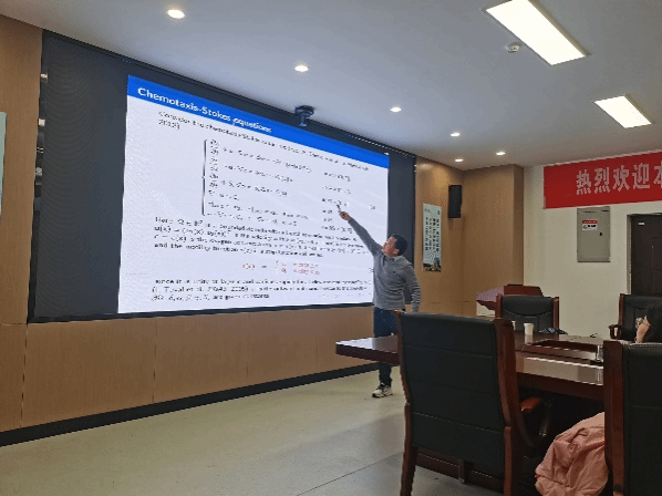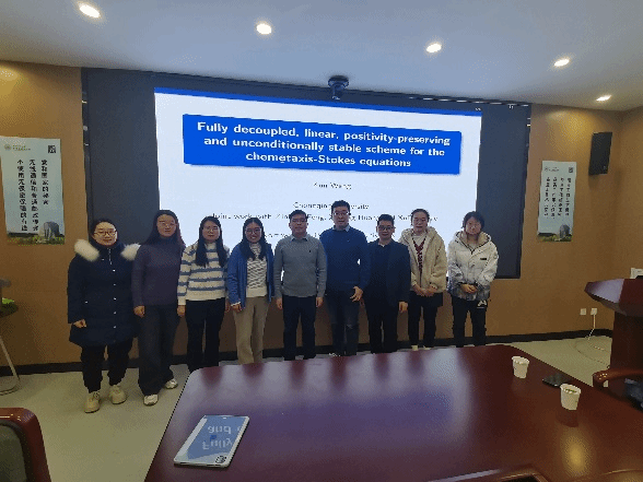 2024年1月4日,威廉体育官方网站第5期“九章数学学术讲堂”成功举办。应威廉体育官方网站聂玉峰教授的邀请,重庆大学王坤副教授在长安校区理公司楼A201会议室做了题为《Fully decoupled, linear, positivity-preserving and unconditionally stable scheme for the chemotaxis–Stokes equations》的学术报告。威廉体育官方网站白建超副教授、荆菲菲副教授、高娅莉副教授、刘昕副教授、张伟伟副教授、魏杰副教授等多位老师及10余名在校硕士、博士研究生参加了此次报告会。报告会由王刚主持。