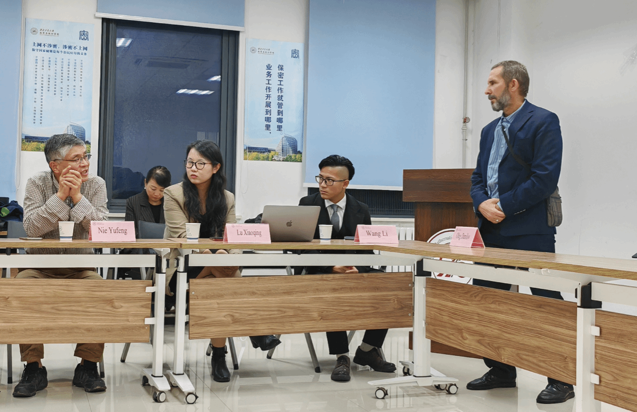 首先,肖曼玉对于Oleg Danilov进行了简要介绍,表达了对于教授来访的热烈欢迎与期盼,希望通过本次交流切实推进双方在科学研究与员工培养方面的合作。接下来,Oleg Danilov作了题目为《Discrete analytic functions in complex spaces and Taylor expansion》的报告,他围绕解析函数新的组合和分析的思想,将离散解析函数加以阐释与推广,并给出自己的新结论并加以证明。最后,参会师生与专家就感兴趣的问题进行了深入讨论与交流,聂玉峰向Oleg Danilov颁发了“九章荣誉教授证书”。
