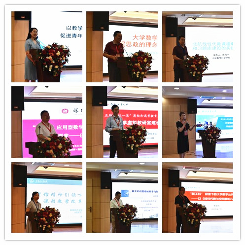 会议专题报告阶段,合肥工业大学朱士信教授以《大学数学虚拟教研室建设的思考与探索》为题、吉林大学李辉来教授以《数学基础课思政建设》为题、哈尔滨工业大学(威海)姜薇教授以《贺信精神引领下的微积分课程教学改革与实践》为题、北京航空航天大学孙玉泉教授以《基于知识图谱的数字化智慧课程建设与应用—以工科数学分析课程为例》为题、电子科技大学李厚彪教授以《新工科背景下的大学数学公共课建设》为题、北方民族大学高义教授以《关于数学一流团队建设的一些思考—以北方民族大学为例》为题、北京航空航天大学陈肖宇教授以《北航线性代数课程电子教材和习题库建设的实践与探索》为题、深圳大学韩雨教授以《数学+”应用型数学类本科专业人才培养模式探索—以深圳大学为例》为题、中国地质大学耿凤杰教授以《以教学竞赛为抓手,促进青年教师快速成长》为题、威廉体育官方网站都琳教授以《大学数学区域教学联合体构建机制的探索与实践》为题分别做专题报告。