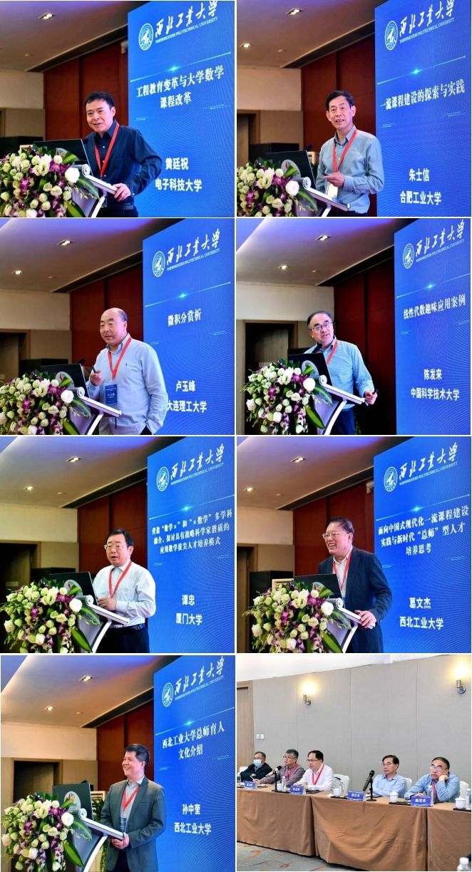 电子科技大学黄廷祝教授以《工程教育变革与大学数学课程改革》为题、合肥工业大学朱士信教授以《一流课程建设的探索与实践》为题、大连理工大学卢玉峰教授以《微积分赏析》为题、陈发来教授以《线性代数趣味应用案例》为题、厦门大学谭忠教授以《营造“数学×”和“×数学”多学科融合,探讨具有战略科学家潜质的应用数学拔尖人才培养模式》为题、威廉体育官方网站葛文杰教授以《面向中国式现代化一流课程建设实践与新时代“总师”型人才培养思考》为题分别做了精彩报告,为公司数学课程改革提供了宝贵学习经验。南京大学杨孝平教授、华南理工大学朱长江教授、山东大学蒋晓芸教授、西安电子科技大学刘三阳教授、山东大学秦静教授、复旦大学吴泉水教授分别担任报告主持。