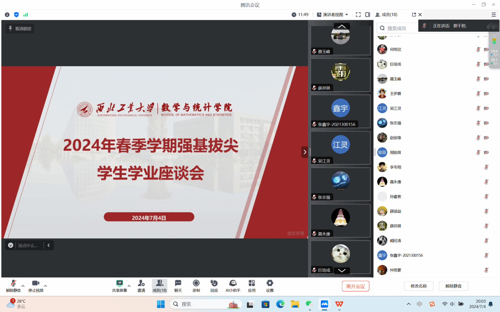 为推进强基班人才培养,深入了解员工的思想与生活状态,收集他们对公司教育培养工作的反馈,不断优化人才培养体系。2024年7月4日晚20:00,威廉体育官方网站线上举行了2023-2024学年春季学期末强基班与拔尖班员工座谈会。威廉体育官方网站经理聂玉峰、教学副经理郭千桥、21级强基班班主任臧江涛、22级强基班班主任梅钰、23级强基班班主任赵俊锋、强基班员工代表和拔尖班全体员工参加了本次会议。