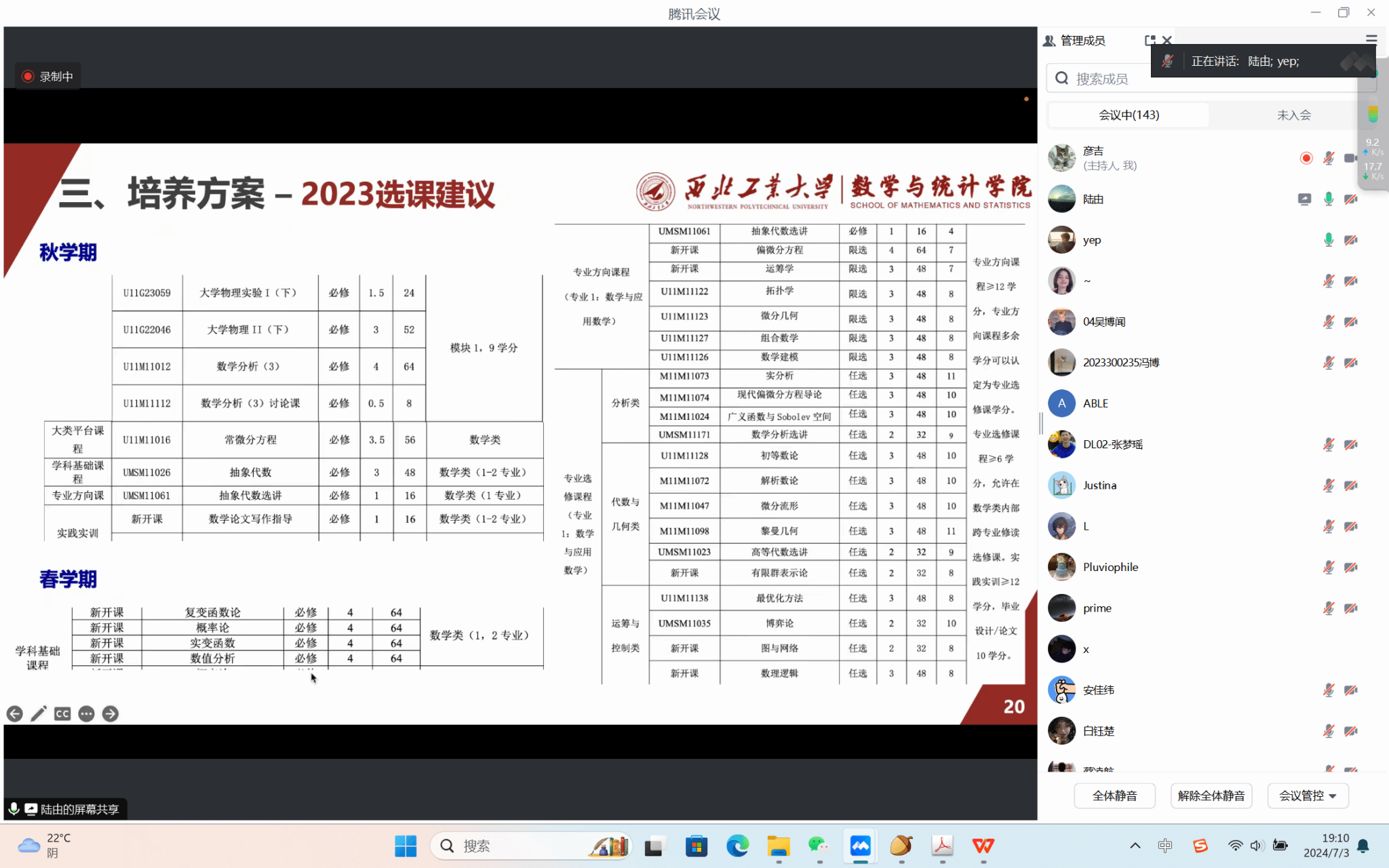 为帮助员工了解员工毕业及研究生推免工作中对课程修读的相关要求,7月3日晚20点,威廉体育官方网站线上组织召开2021级和2022级选课指导活动,公司教学副经理郭千桥、系主任陆由、赵俊锋、王亮、教学秘书李思遥及2021级和2022级本科生参加了本次会议。