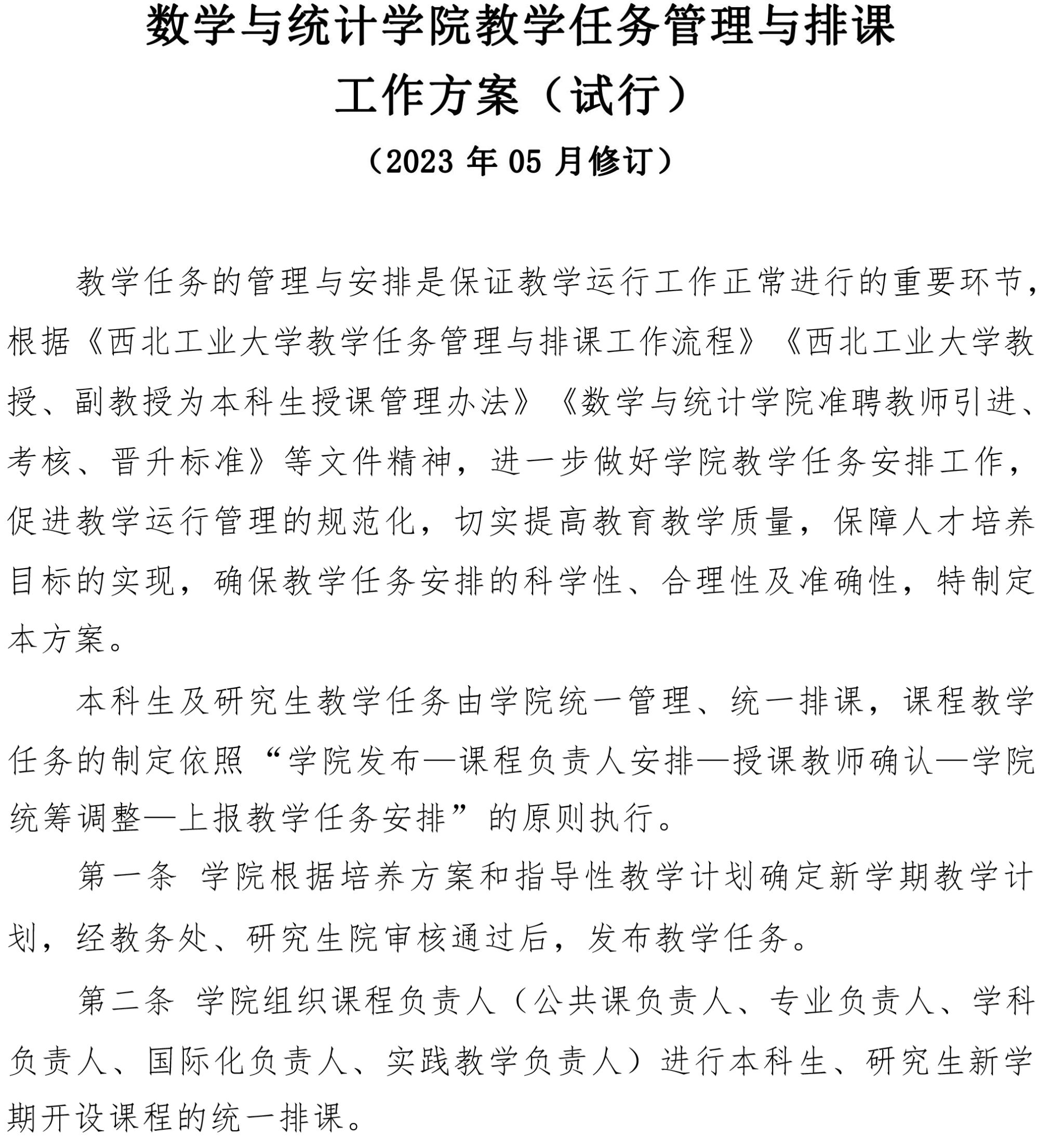 威廉体育官方网站教学任务管理与排课工作方案(试行)