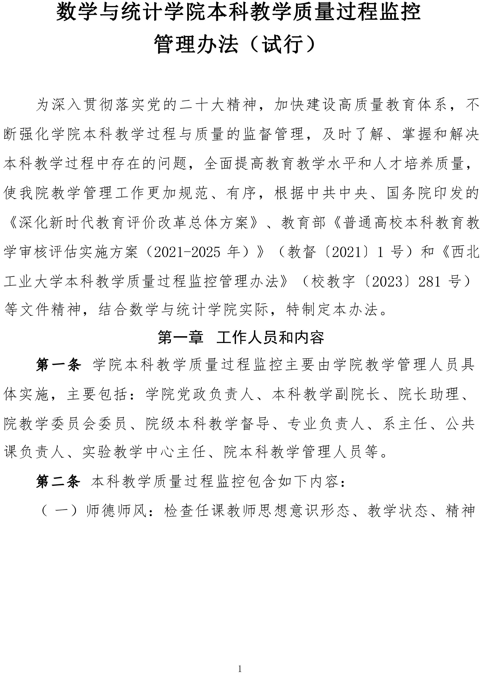 威廉体育官方网站本科教学质量过程监控管理办法(试行)