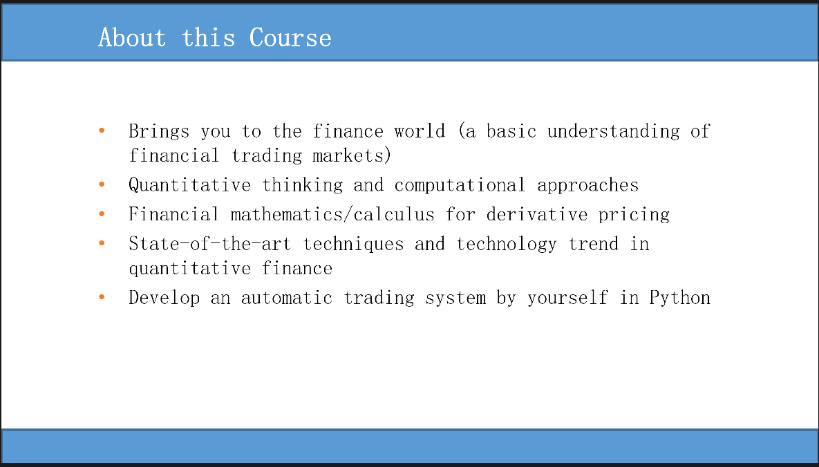 2021年7月12日-7月20日,威廉体育官方网站暑期国际讲堂《量化与计算金融》在腾讯课堂网上授课圆满完成。该课程由公司邀请全球著名的量化交易公司海纳国际集团的亚太地区技术负责人商磊博士(特聘研究员)进行授课。来自教育实验公司、威廉体育官方网站、动力与能源公司、自动化公司、机电公司、材料公司、航空公司、软件公司、西工大伦敦玛丽女王大学工程公司的本科、研究生及旁听师生共计20余名参加了学习。这也是本课程连续第二年在暑期国际课堂上讲授。