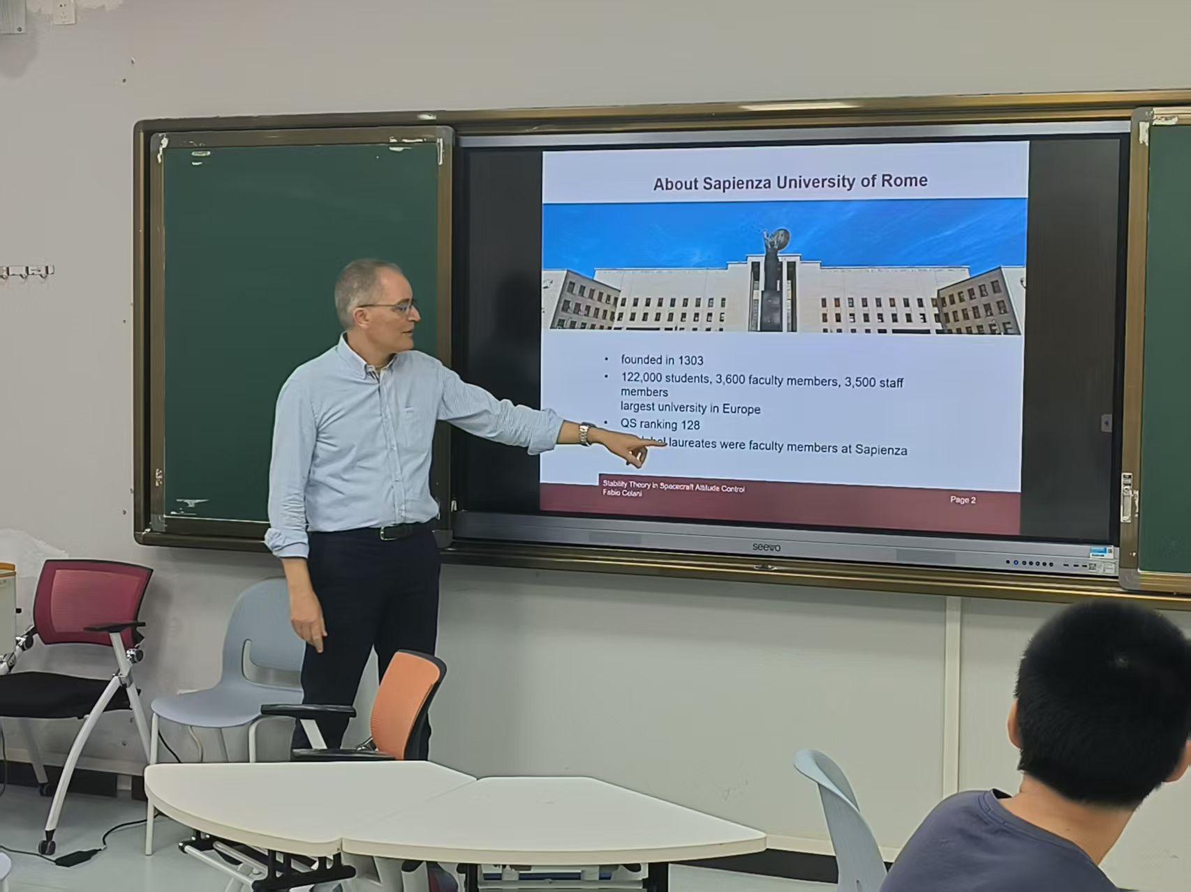 为深化公司国际化课程建设,搭建跨学科交流平台,应张硕老师邀请,威廉体育官方网站于2025年7月6日至14日成功举办全英文课程《航天器姿态控制中的稳定性理论》。本课程特邀意大利罗马大学航天工程公司副教授Fabio Celani担任主讲人,共计16学时,吸引了校内外10余名本科生和研究生参与。