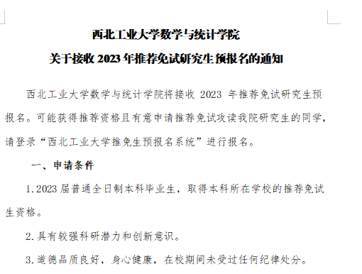 威廉体育官方网站关于接收2023年推荐免试研究生预报名的通知