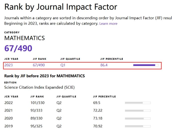 IJNAM的2023期刊影响因子为1.3. IJNAM在490个数学期刊中排名67位,位于Q1区。
